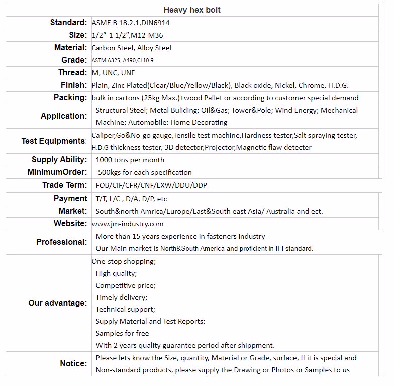 DIN7990 - Bullone Hex/bullone capo di esagono - acciaio al carbonio - 40Cr - Galvanizzazione calda - Grade8. 8 - M64
